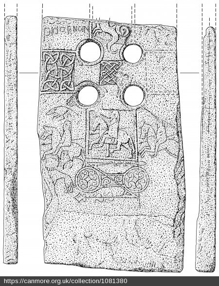 Regarding the roman text, however, Macalister (1940, 198) linked IDARNOIN with the EDDARRNONN of the Scoonie stone (S-FIF-001) and IP to the IPE on the Drosten Stone from St Vigeans.